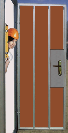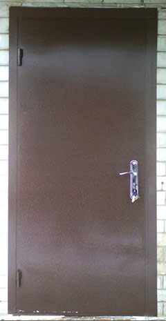 Конструкция дверного полотна состоит из сварного каркаса. На каркасе смонтированы два (или один наружный) листа металла.